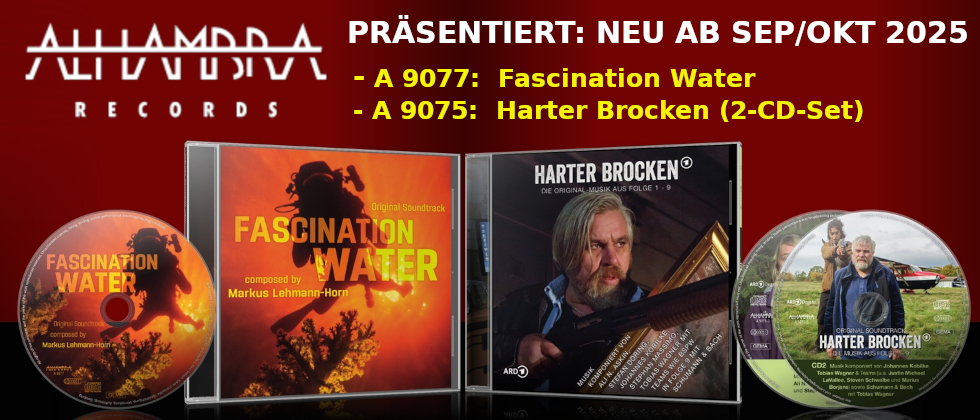 Das Filmmusik-Label Alhambra Records entstand 1989 mit den ersten CDs zu amerikanischen Filmen. Darunter befanden sich unter anderem auch drei Werke von John Williams. Es folgten verstärkt italienische Produktionen, zum Beispiel von Morricone und Bacalov, und natürlich viele Veröffentlichungen deutscher Kompositionen. Mit Jürgen Himmelmann (Alhambra) und dem Partner John Elborg(Torus)hat das Verlagsteam nun einen Schwerpunkt von Alhambra Records vor allem in der Veröffentlichung filmmusikalischer “Klassiker”, als auch Soundtracks zu aktuellen deutschen Film- und Kinoproduktionen. Der komplette Alhambra Trailer mit Ausschnitten aller Komponisten ist hier